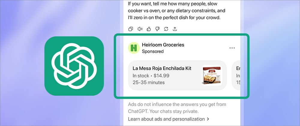 - Paid placement: ChatGPT allows sponsored listings that appear in a clearly marked area below the AI response. These ads rely on both the current conversation and previous prompt history, though consumers can choose to turn off this history-based personalization in their settings.